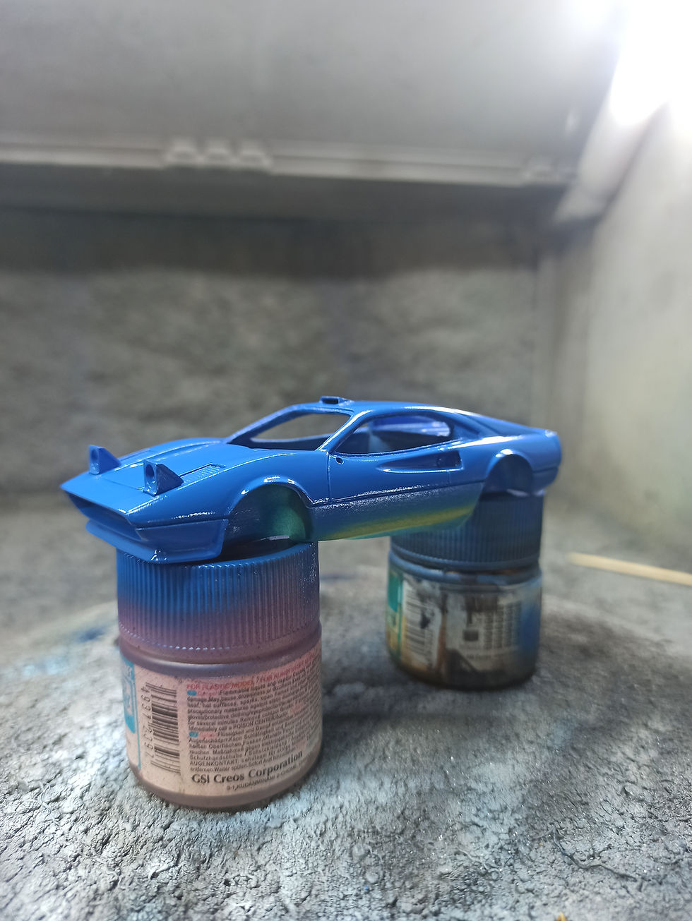 Dopo aver tappato il foro dell'antenna sul tetto (non era presente su questa versione)ho iniziato la fase di verniciatura proprio su questa GTB